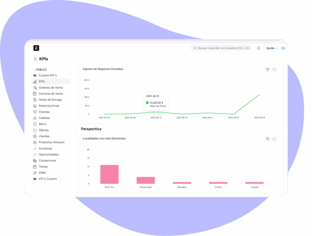 Clientes potenciales, tasa de conversión, ventas y más. Métricas en tiempo real para decisiones rápidas.